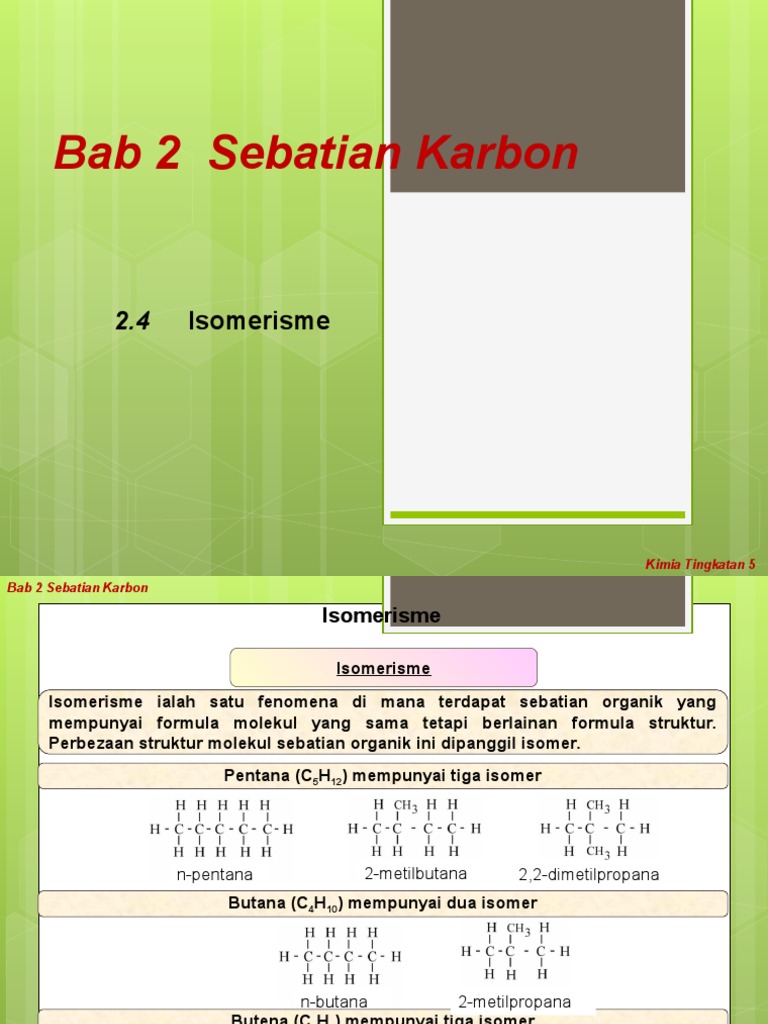 Isomerisme ialah satu fenomena di mana dua atou lebih molekul mempunyai formula molekul yang sama tetapi formula struktur yang berbeza. View 2.1 sebatian organik.ppt from che inorganic at mrsm tun ghafar baba. Jirim dan bahan bab 5 : Tindak balas eksotermik (exothermic reaction) tindak balas endotermik (endothermic reaction) <p>tindak balas eksotermik (exothermic. Ikatan kovaken ialah ikatan kimia yang terbentuk daripada perkongsian elektron antara dua / lebih atom bukan logam.