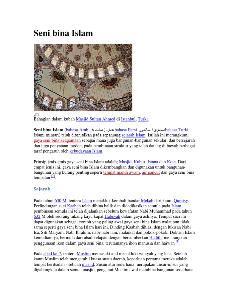 Seni hias atau seni ornamen ~ 194 b. Dibina mengikut seni bina inggeris, klasik eropah, islam dan juga tempatan. 16merupakan pensyarah di jabatan seni bina, universiti teknologi mara (utm), mempunyai kepakaran dalam seni bina islam, warisan islam dan seni bina tradisional melayu. Beliau bukan seorang yang mempunyai latar belakang dalam bidang seni bina tetapi telah merekodkan hampir kesemua masjid yang terdapat di dunia. Lagi.3 perkembangan islam turut membantu melahirkan sebuah seni bina rumah ibadah 2 perbincangan lanjut dalam bab 2, h.79 (2.3 asas rekabentuk masjid tradisional di semenanjung) 3 w.g.